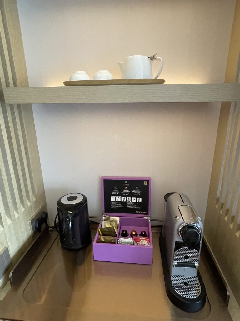 Jedes Zimmer im The Silveri Hongkong ist auch mit einer Nespresso Kaffeemaschine, Wasser im Tetra-Pack sowie JING-Teebeuteln ausgestattet. Neben dem Duschbereich mit Regendusche und dem Eingang des Schlafzimmers befindet sich eine abgetrennte Toilette, die mit einer aufwendigen Bidet-Funktion und einem beheizten Toilettensitz ausgestattet ist.